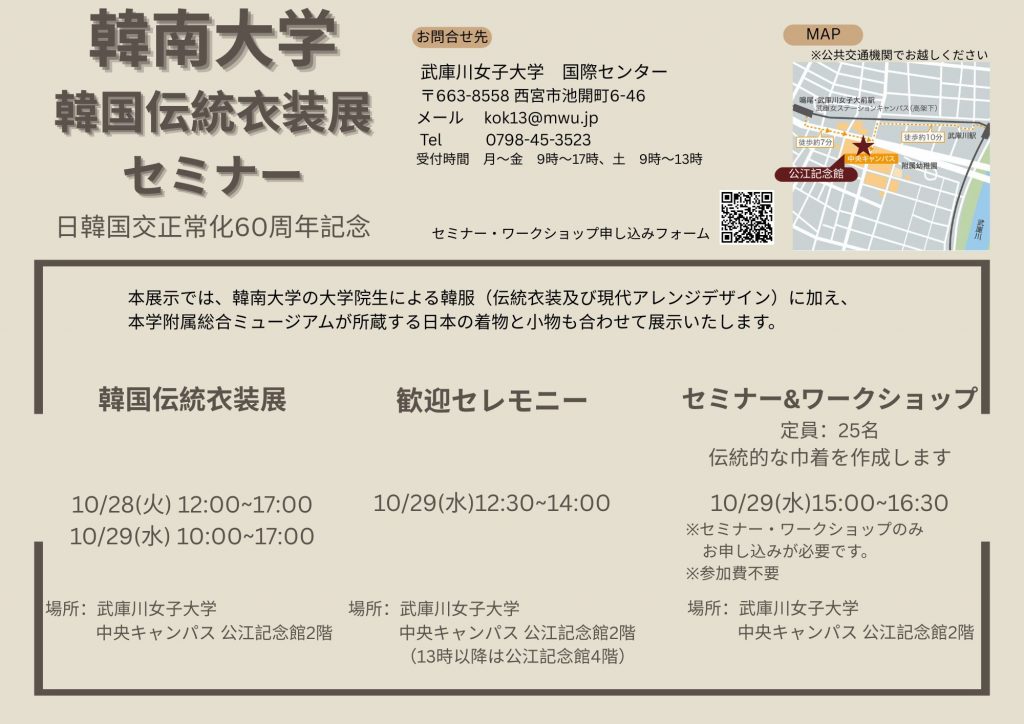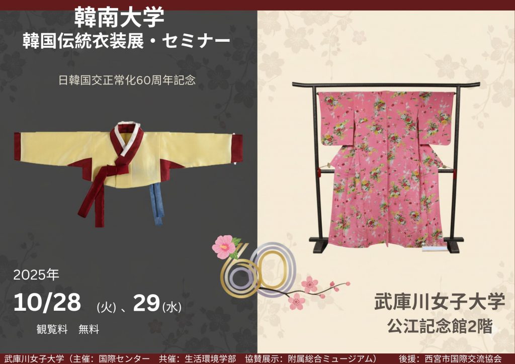 この度、国際センターは生活環境学部・附属総合ミュージアムの協力のもと、日韓国交正常化60周年を記念し、特別企画展「韓国伝統衣装展」を開催いたします。