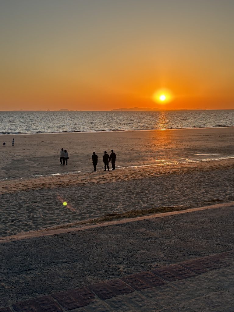 4月25・26日にフィールドトリップがありました。このフィールドトリップには日本人の他にベトナム、台湾、アメリカ、インドネシアなど様々な国の方と一緒に学校がある大田からバスで1時間30分くらいのところにある群山に行きました。海沿いの地域なので昼も夕方もとっても海がきれいで今まで見た海の中で1番美しかったです。夜は海鮮鍋を食べました。となりが台湾の方で韓国人以外の海外の人と話す機会がなかったので勇気をだして話しかけました。とても優しい方で、台湾の観光地や地元について話してもらい、拙い韓国語ではありますが意思疎通できたことが嬉しく2か月の成長を感じることが出来ました。夕食後は海に行き、日の入りを見ながら沢山話をして、とてもきれいな写真が撮れました。2日目はスカイバイクに初めて乗りましたが、想像以上にスピードがあって面白く、景色も楽しむことが出来ました。郡山は初めて行きましたが、旅行では行く機会がない地域だったのでとても楽しく良い思い出が出来ました。