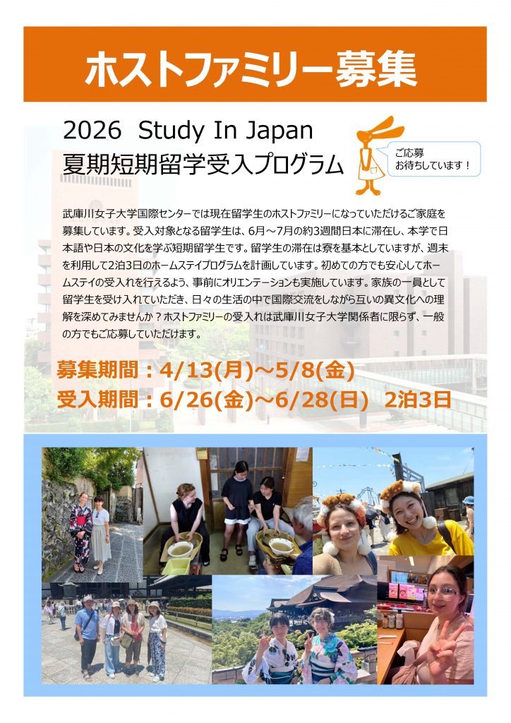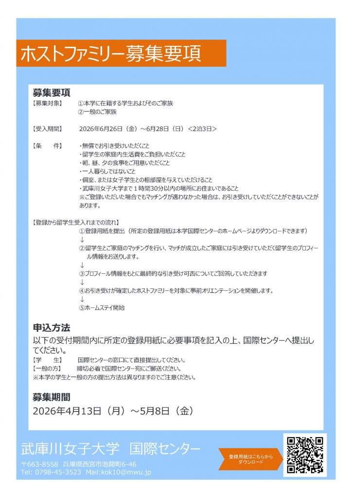 詳細は国際センターホームページの「ホストファミリー募集情報」をご確認ください。